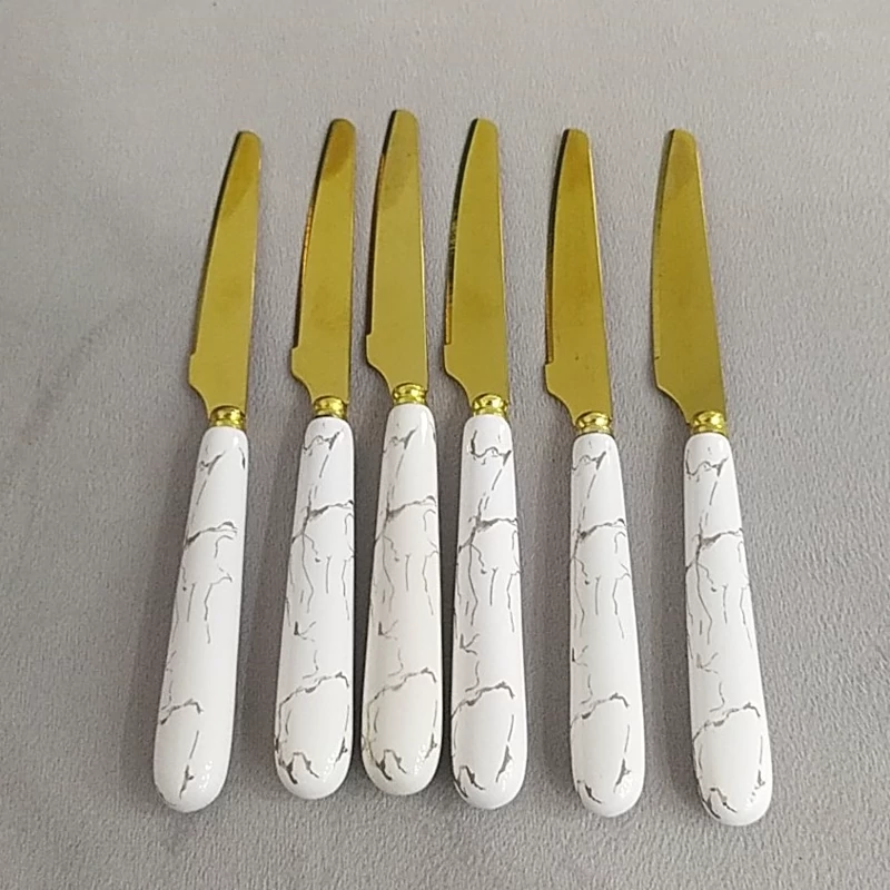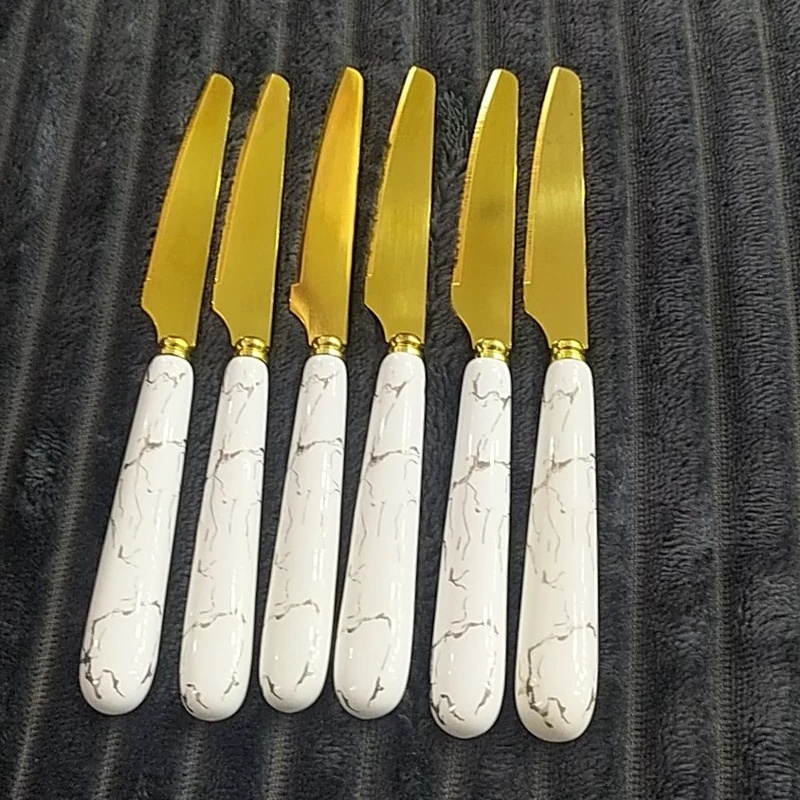 چاقو چنگال میوه سرامیکی تیغه طلایی طرح ماربل در دو رنگ سیاه و سفید جنس وارداتی 6تا چاقو 6تا چنگال ارسال به سراسر کشور