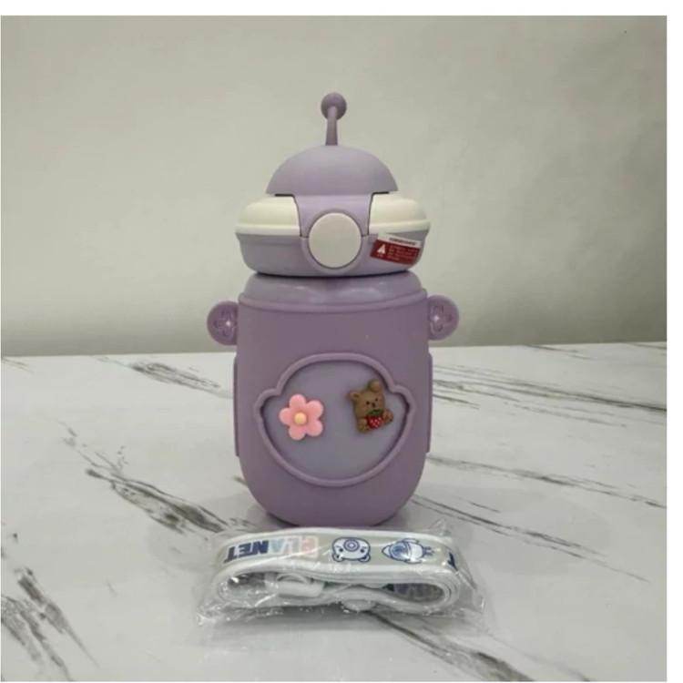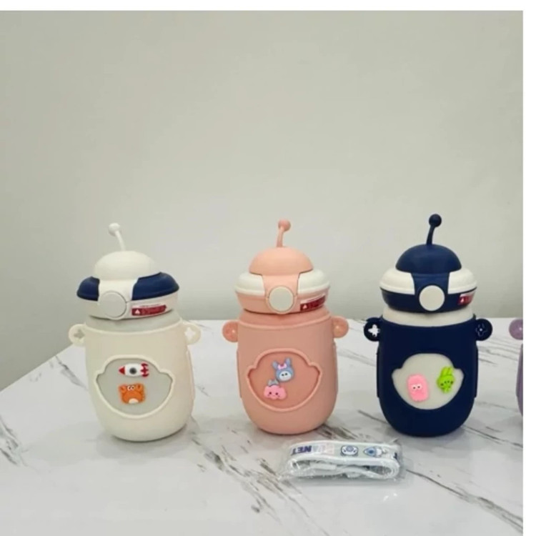 قمقمه آدم فضایی استیل نیدار 380میل بند بلند دورسیلیکونی برچسب و استیکر دار ارسال به سراسر کشور