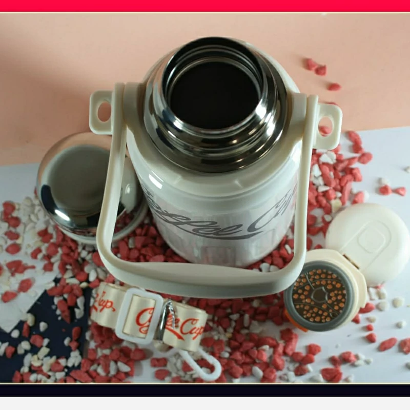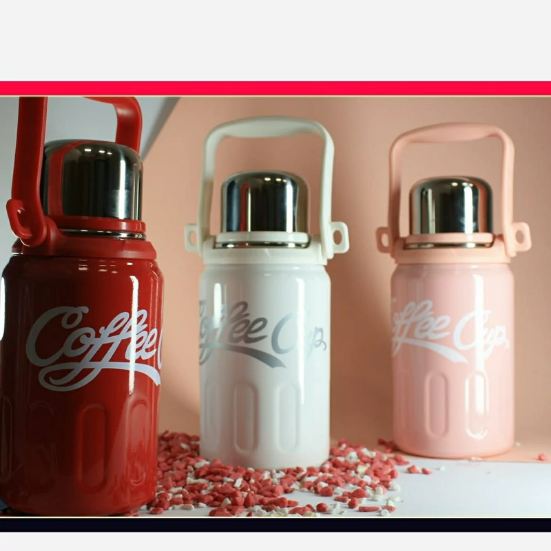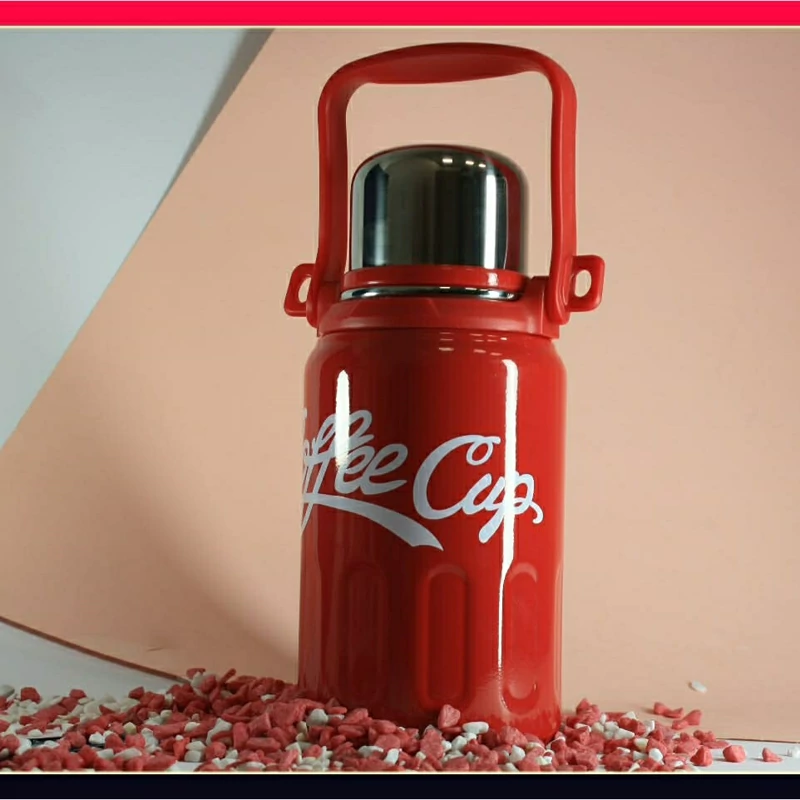 فلاسک استیل دسته دار بنددار یک لیتر سه رنگ جذاب مارک کافی کاپ دکمه ای جنس وارداتی ارسال به سراسر کشور