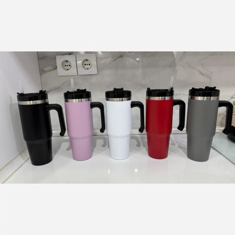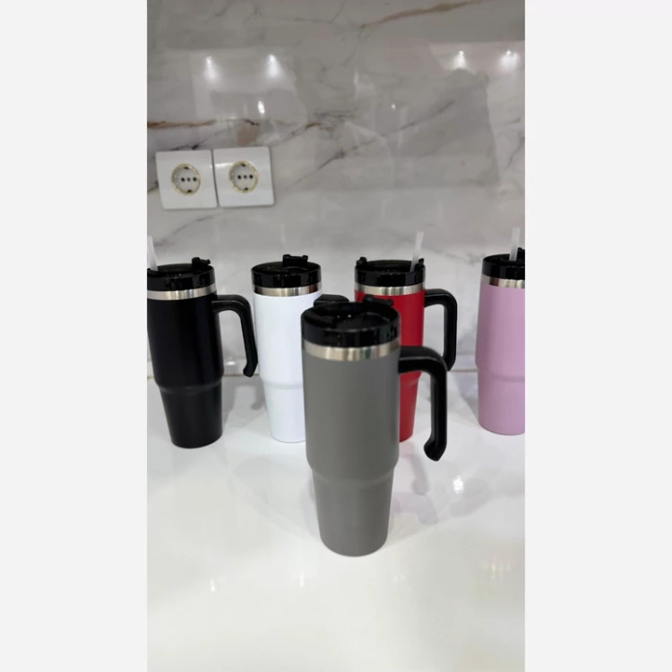 تراول 900میل طرح استنلی پنج رنگ زیبا استیل با کیفیت برای نوشیدنی سرد و گرم نی دار ارسال به سراسر کشور