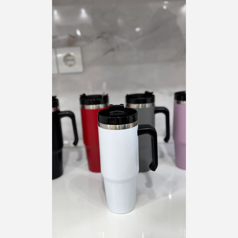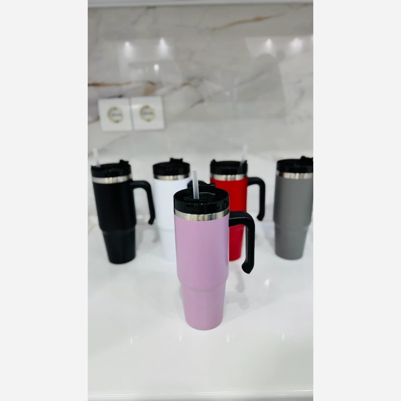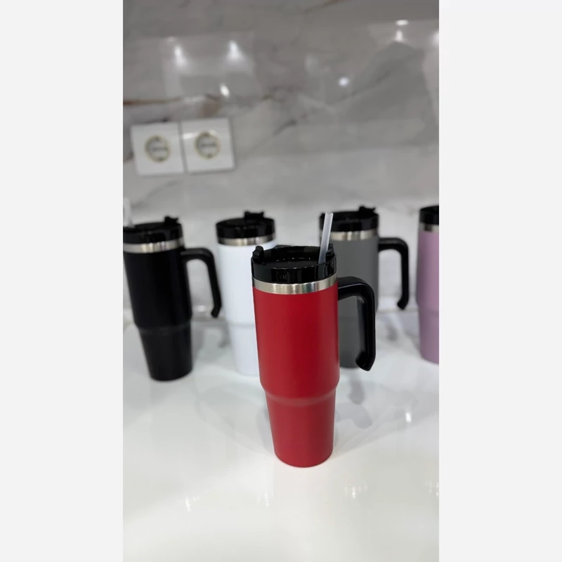 تراول 900میل طرح استنلی پنج رنگ زیبا استیل با کیفیت برای نوشیدنی سرد و گرم نی دار ارسال به سراسر کشور