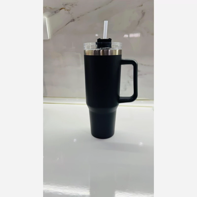 تامبلر (تراول ماگ) طرح استنلی 5 رنگ جذاب نی دار 1200 میل استیل اونی که تو عکس مشکیه رنگش طوسیه تیره هست جنس وارداتی ارسال به سراسر کشور